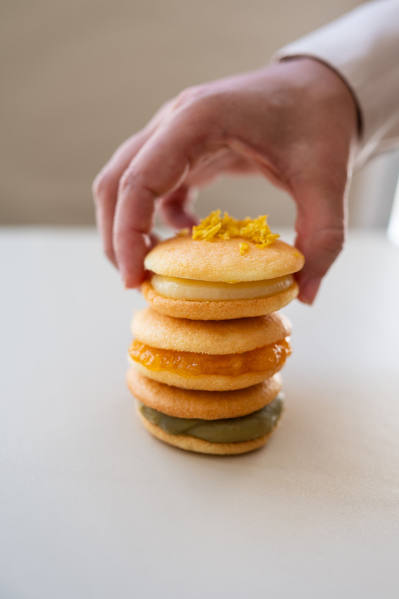 Além do nosso tradicional Doce de Leite da Emília, oferecemos uma variedade de sabores únicos: Limão Siciliano, Churros, Chocolate Belga, Coco, Damasco, Nozes, Ovos e Pistache. Todos os bem-casados são kosher e disponíveis nas versões sem glúten ou sem lactose.